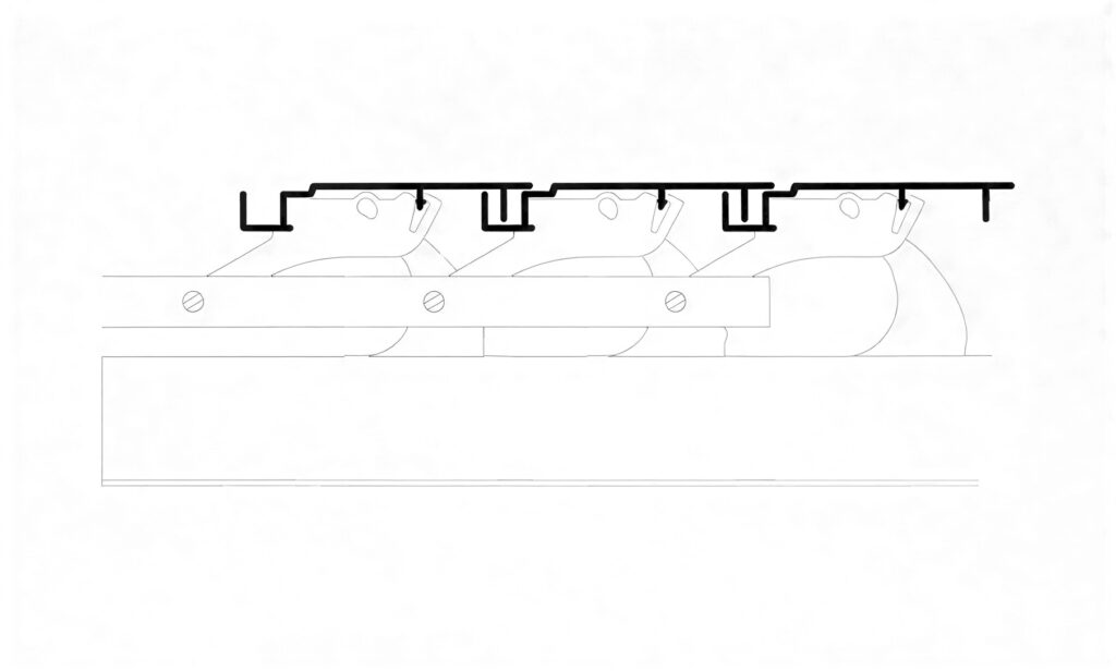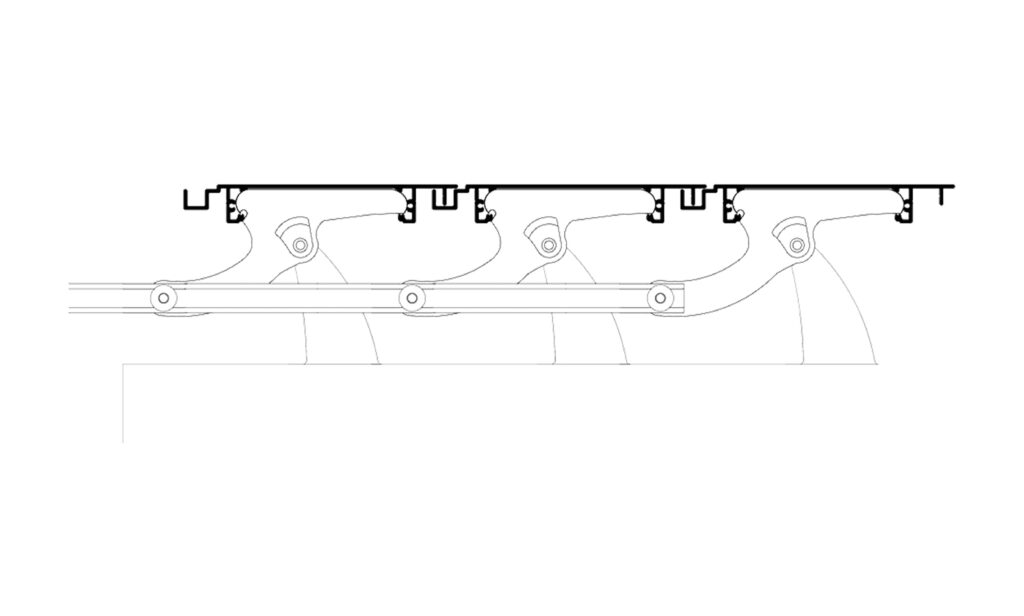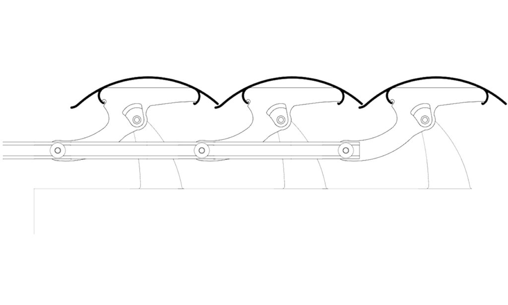 The operating strip is attached to the rack arms ensuring alignment for the smooth operation of the system.
