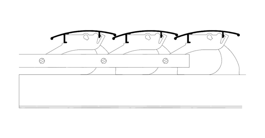 Brushes are an optional component that help achieve blackout when the system is closed. They slot into an angle bracket that is fixed onto the building structure or window mullion. 21mm (5/6”) x 118mm (1/9”)
