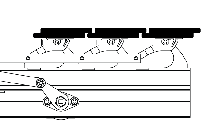 The system using any size slat can be manually operated using a gear box which connects to the tilt shaft and turned by a detached crank handle. The handle lengths can be specified for your projects.