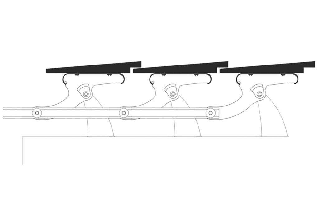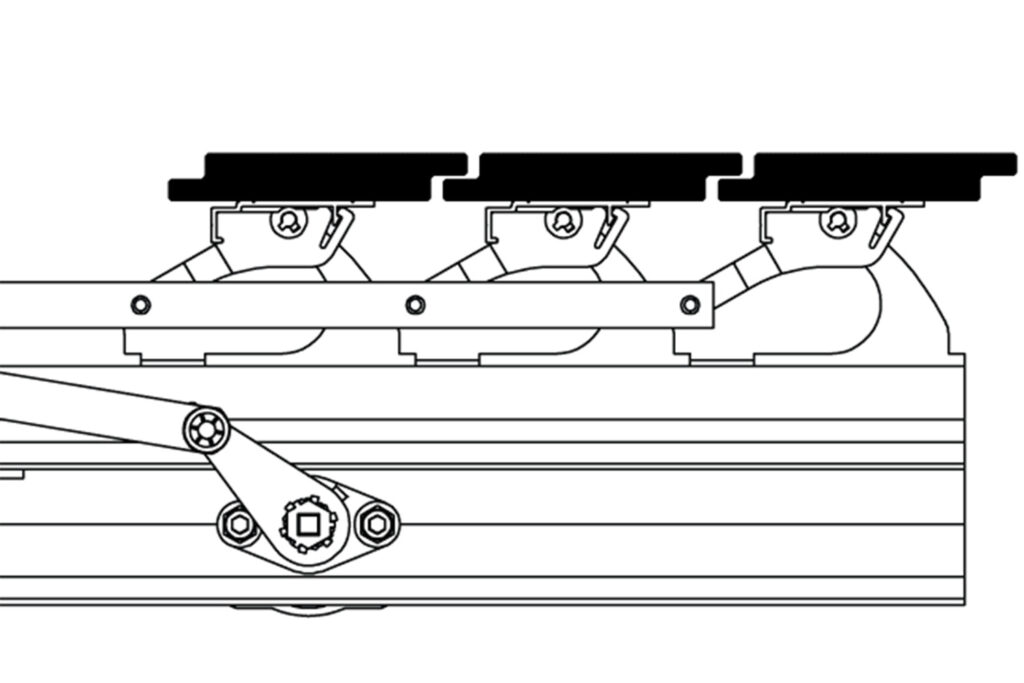 The operating strip is attached to the rack arms ensuring alignment for the smooth operation of the system.